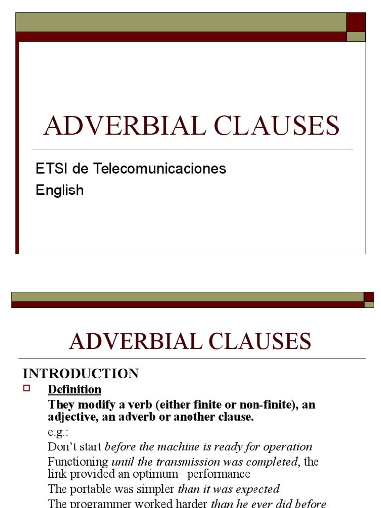 Adverbial Clauses from image.slidesharecdn.com With adverbial clauses, you can normally move the clause without too much trouble. #rils the lingua expert# this video is for those who have confusion with regards to basic and advance english grammar. You can also see what they are used for and some example sentences. This type of clause usually employs. It is similar to adverbs and also performs the this adverbial clause refers to when an action takes place. In informal english, everywhere is sometimes used instead of wherever. Adverbial clauses generally follow the main clause unless otherwise stated. (like all clauses, an adverbial clause contains a these examples have been categorized according to the type of adverbial clause (e.g., adverb of time, adverb of place).